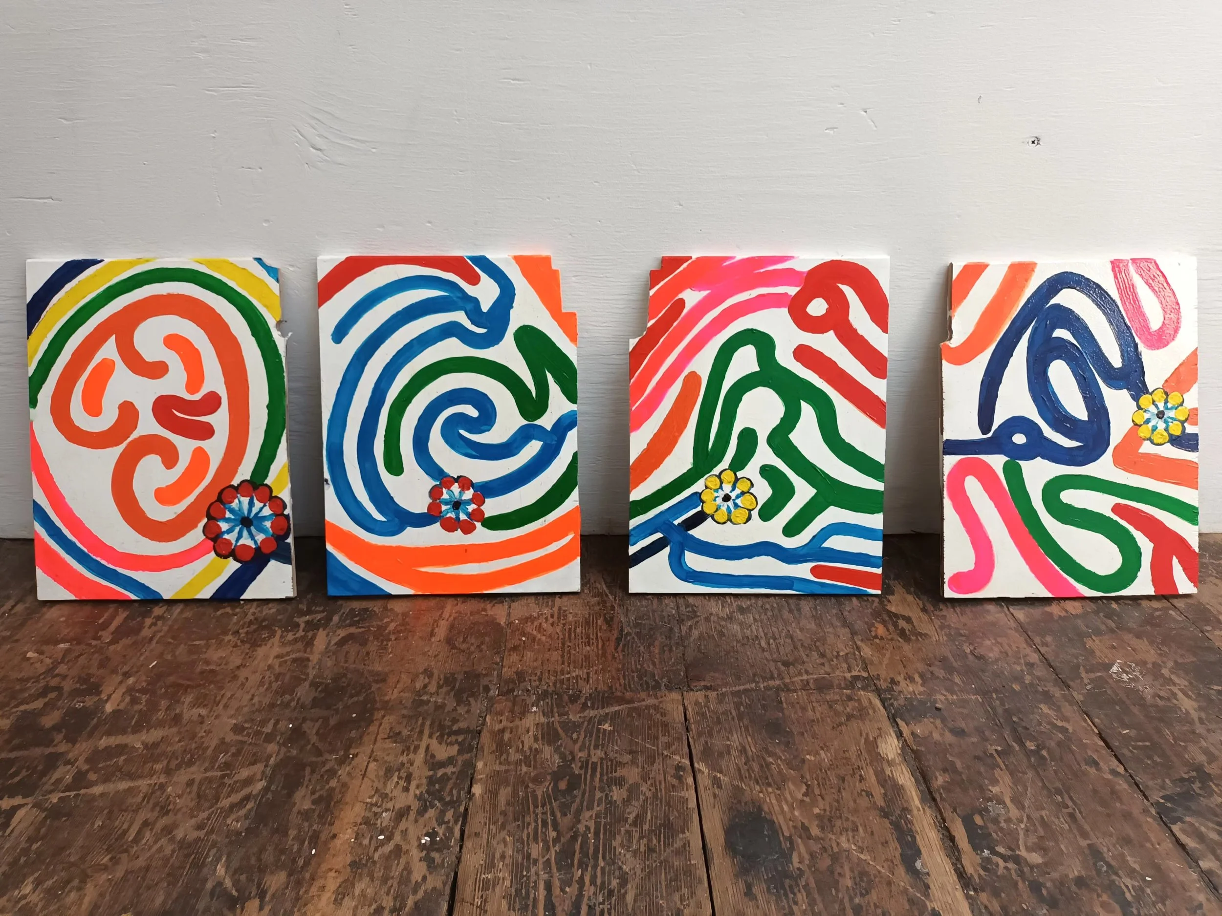 The Fingerprints is an architectural installation on the façade of La Catedral Studios, offering the local community a window into the creative processes of our resident artists. These vibrant works breathe new life into the historic character of the building, adding color and energy to the surrounding streetscape.